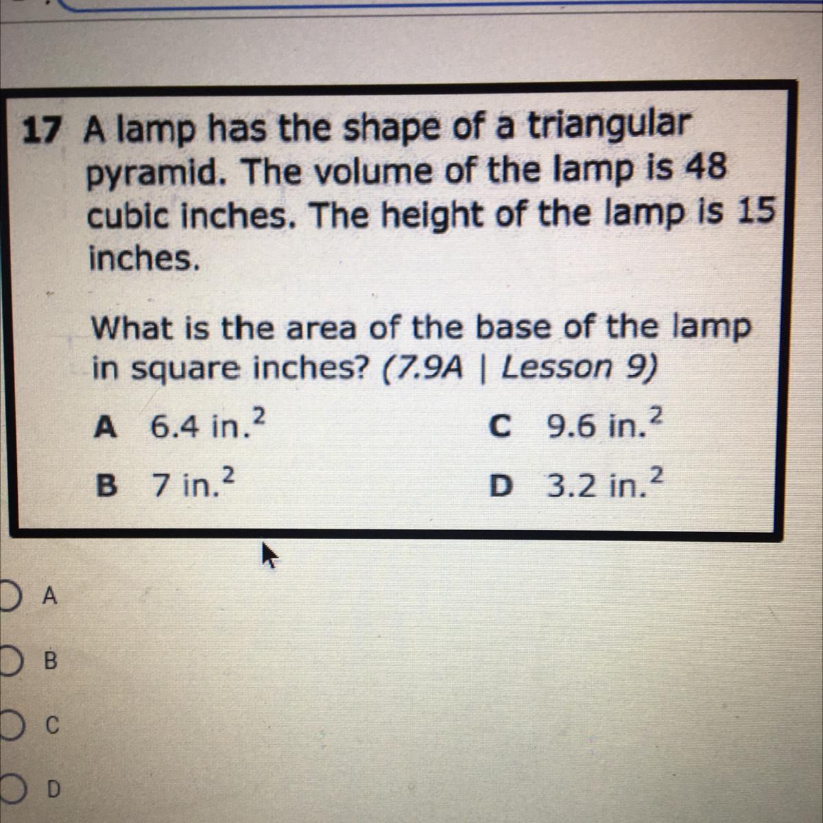 Area = π*4² = 16π = 50.3 (nearest tenth)