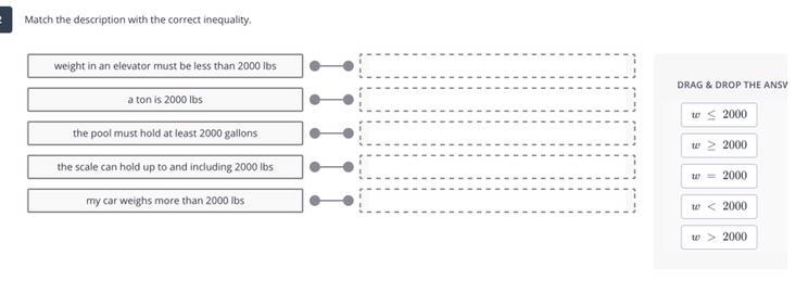 weight in an elevator must be less then 2000 - w is less then 2000 or the first option