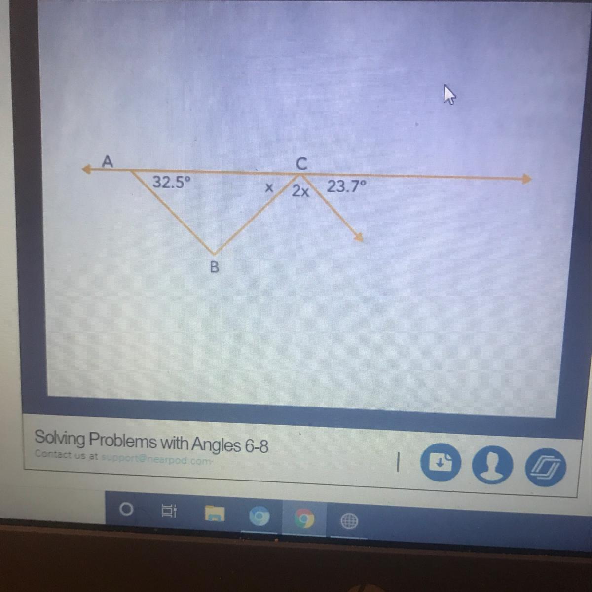 angles x, 2x, and 23.7 add up to 180 degrees
