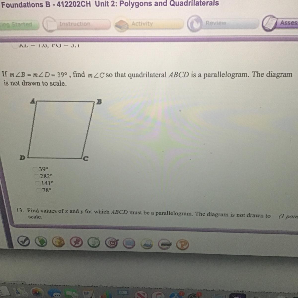 Easy question!!! If m 2B - m2D- 39º, find m2C so that quadrilateral ABCD is a parallelogram. The diagram