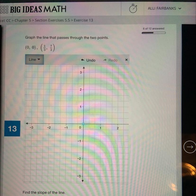 First plot the two points on the graph (0, 0) and (1/3, 7/3)