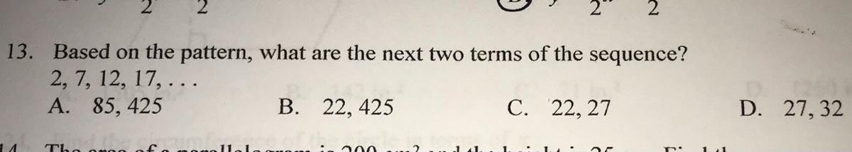 the next two terms are 22 and 27