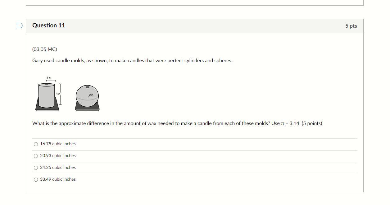 ---> 16 pi is the same as 50.24 cubic inches (if you use 3.14 as pi). - Next is the Sphere-->