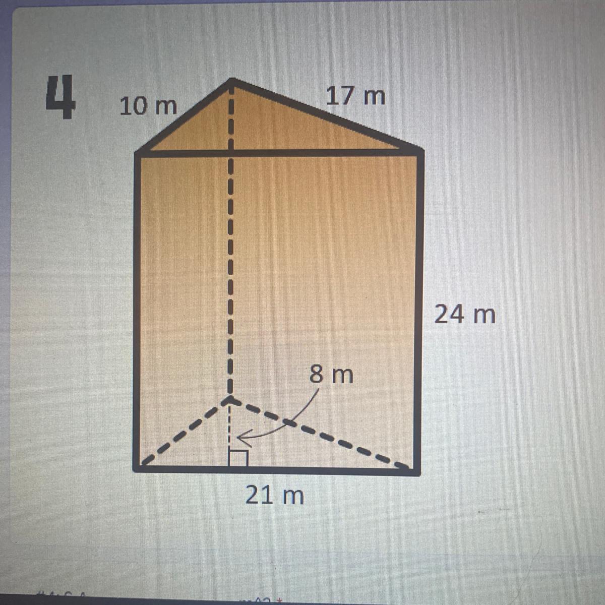 Right triangle: 1/2(8x3) = 12 units²