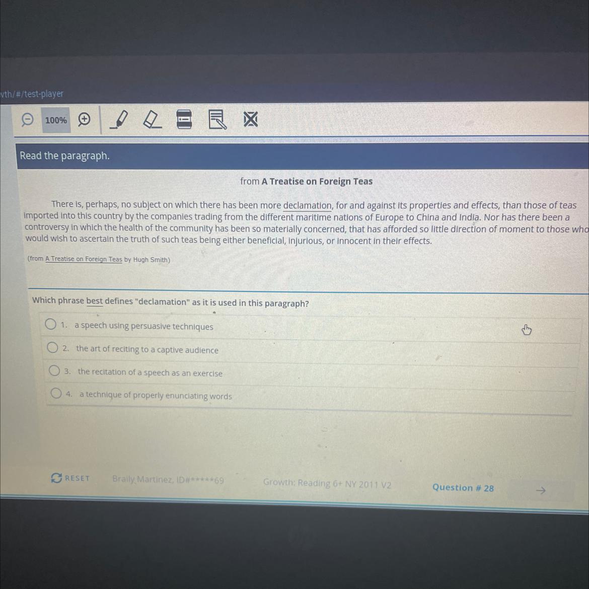 Which phrase best defines "declamation" as it is used in this paragraph?