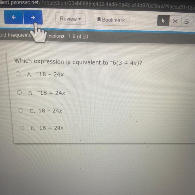 Which expression is equivalent to -6(3 + 4x)?