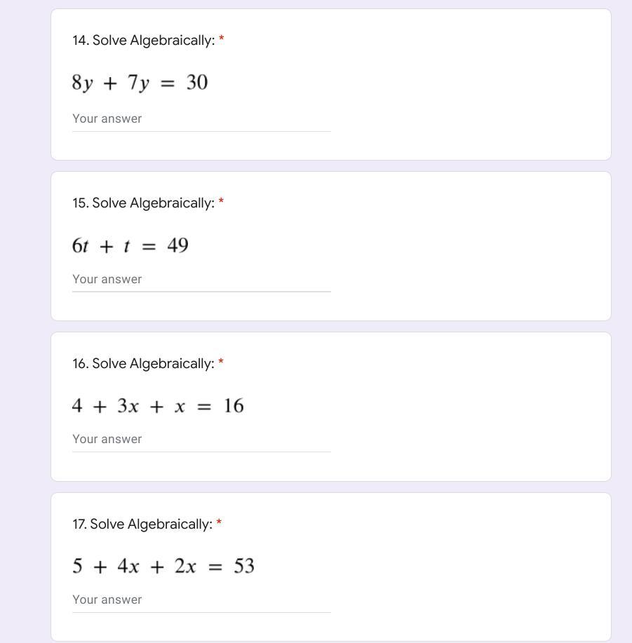 15. 7t = 49 --> 49/7 = 7