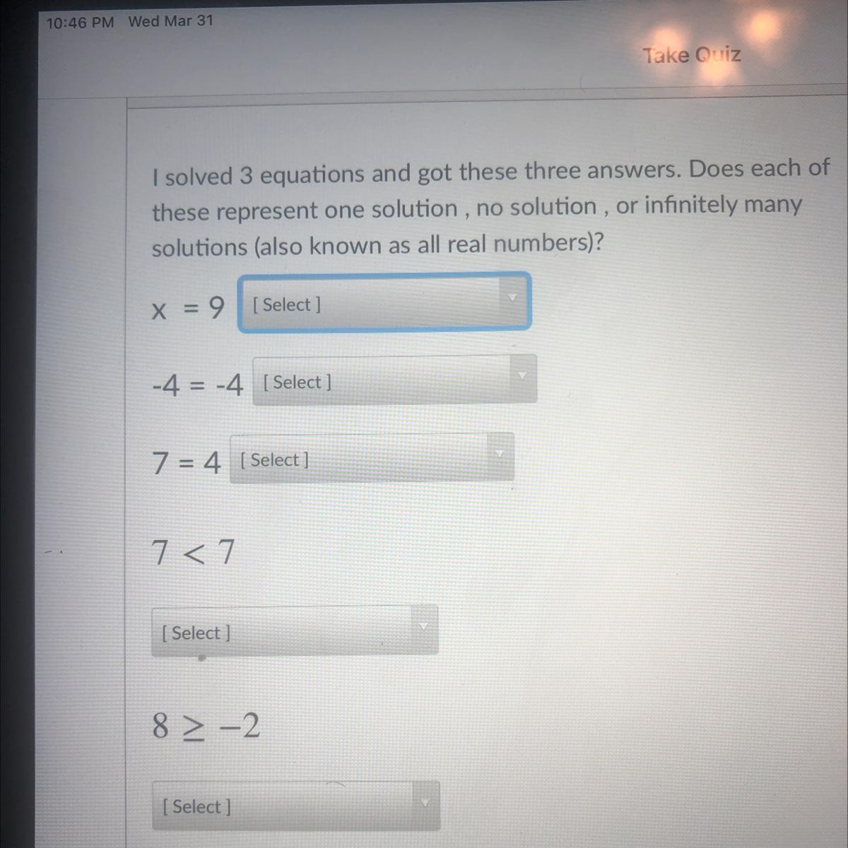 fill the dot for including equality