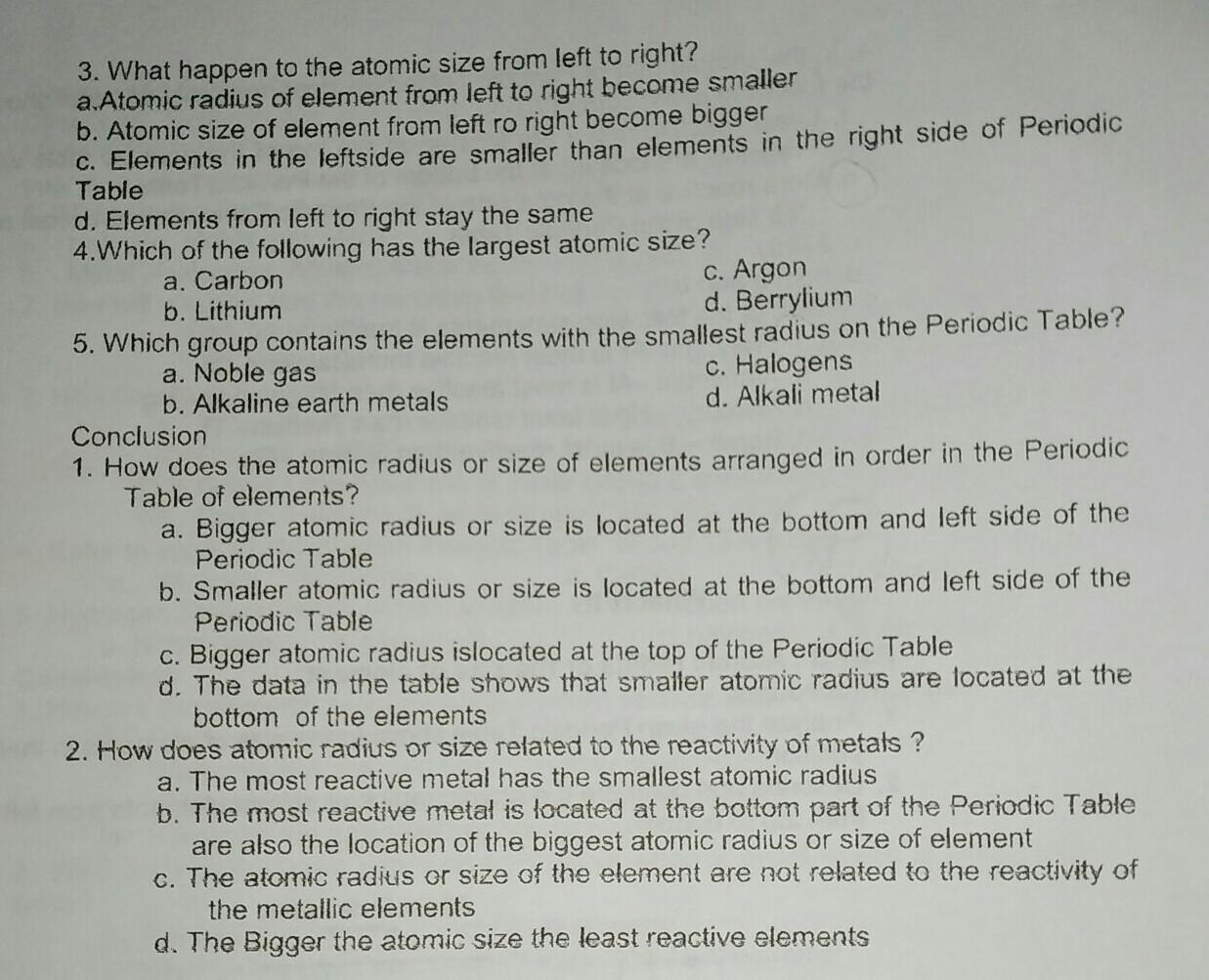 so, the answer is <u>a</u><u>.</u><u> atomic radius of elements decreases from left to right. </u>