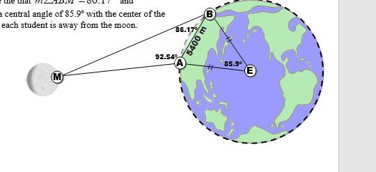 try, and a tangent line to determine the that and . The two students form a central angle of 85.9º with the center of the earth. Given this information determine how far each student is away from the moon.