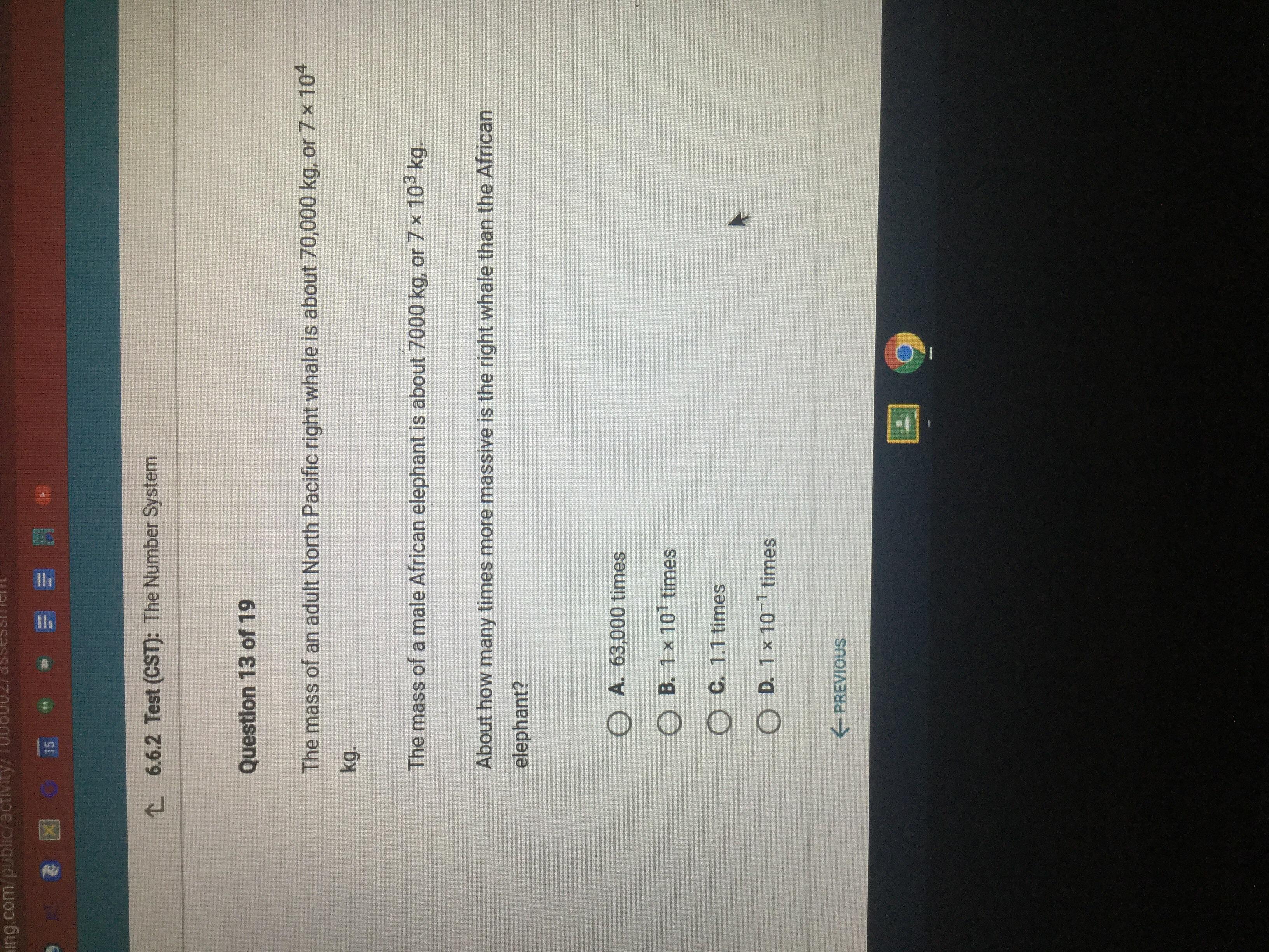A 63,000 times B 1*10^1 times C 1.1 times D 1*10^-1