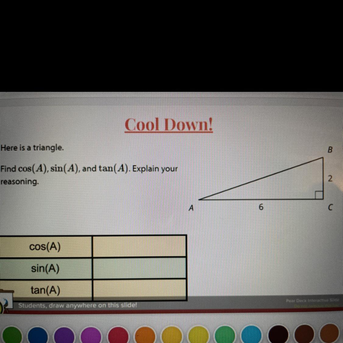 Where is an angle of tge triangle.