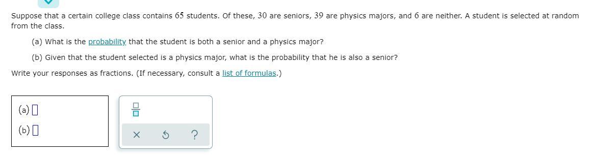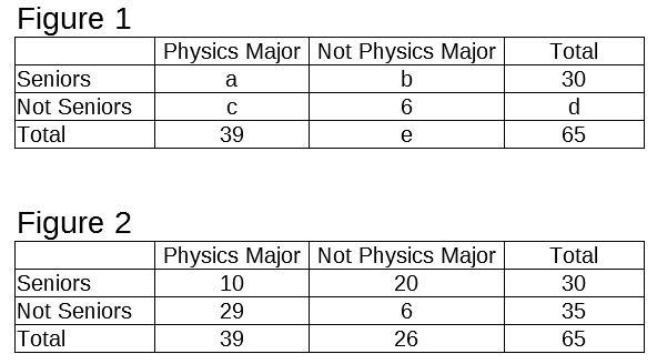 We have a = 10 seniors who are also physics majors out of 39 physics majors total.