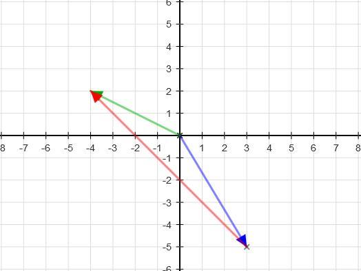 In the plot shown, the blue arrow is the starting position, the green is the final position and the red is the displacement vector.
