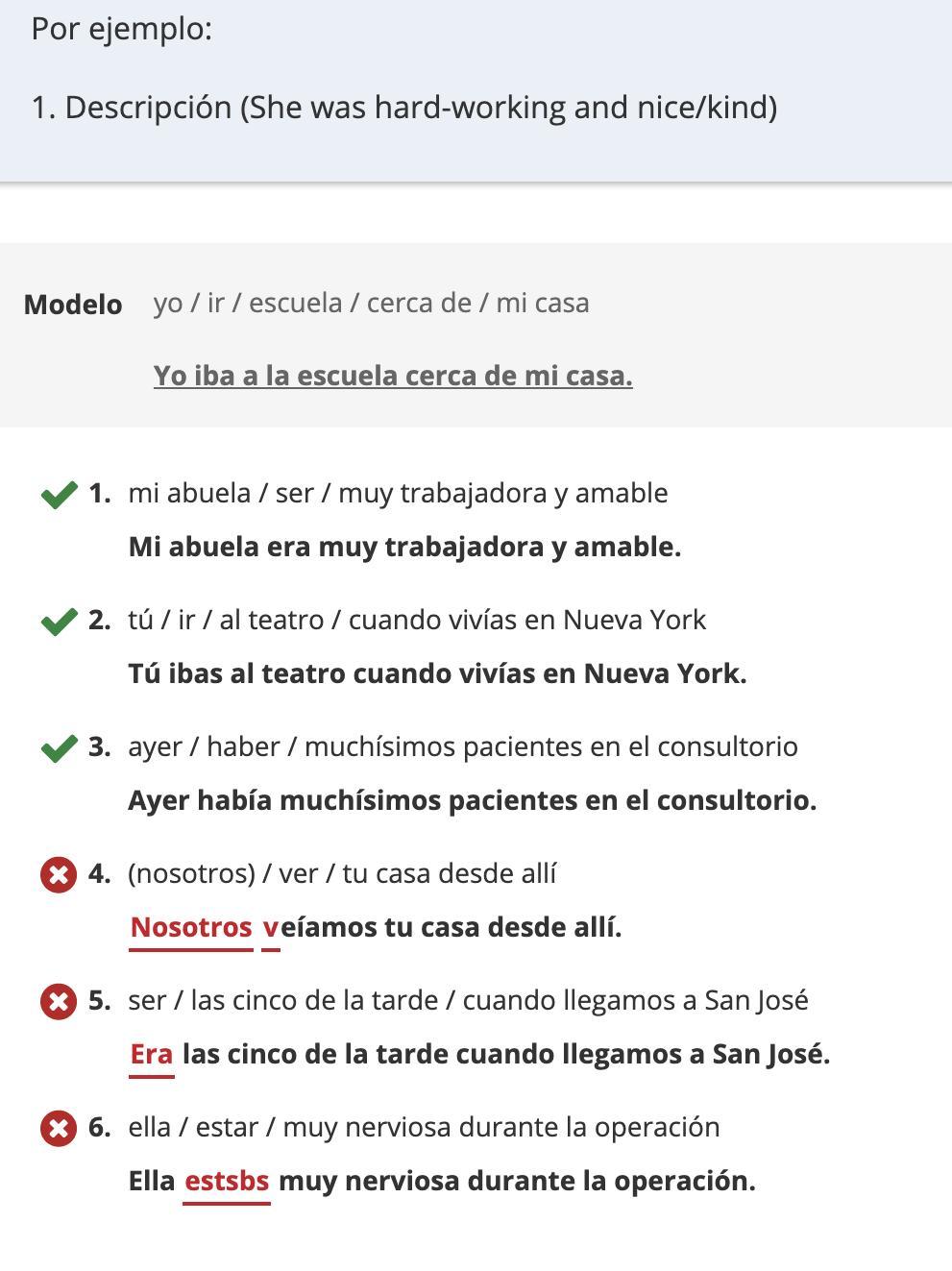 Help PLEASE with 4,5,6 Spanish/Imperfect tense/Para esta actividad escriban qué tipo de acción se expresa en cada oración. Traig