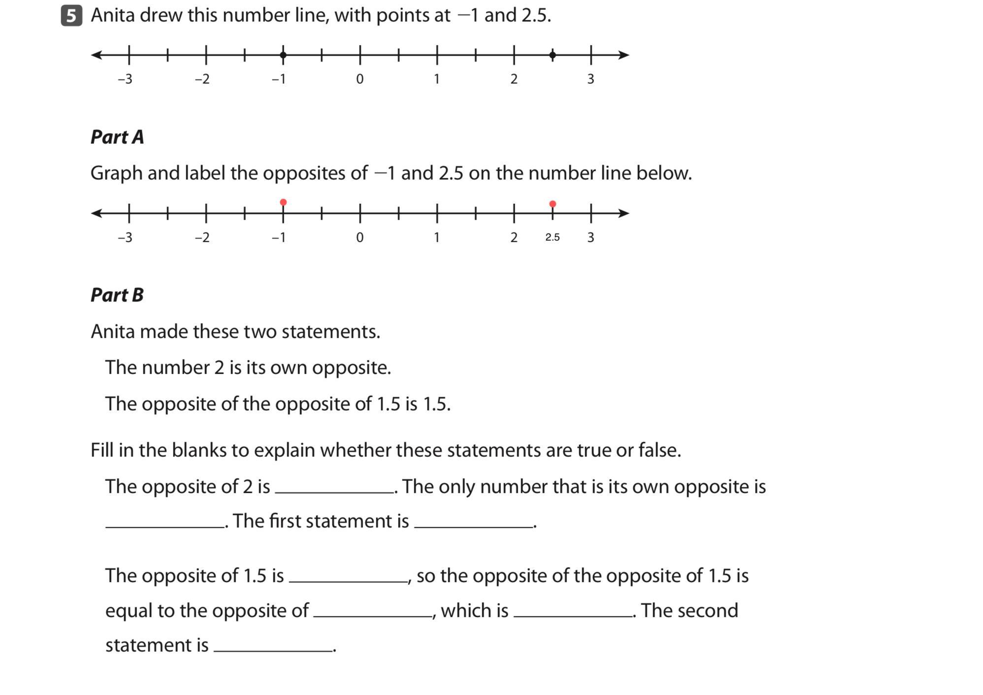 B) The opposite of 2 is -2. The only number that has its own opposite is 0. The first statement is false.