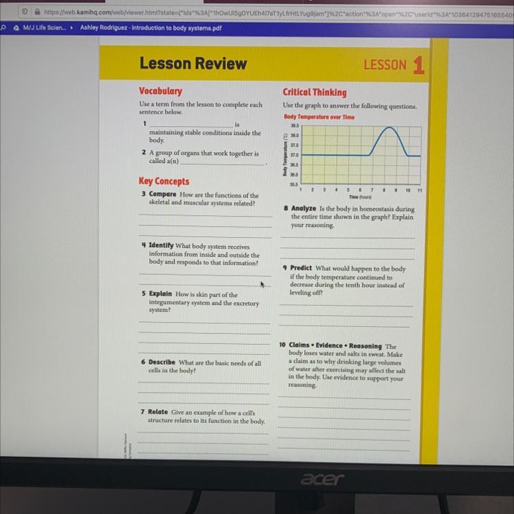 this is regular science but the topic is introduction to body systems from the science book please someone help thanks
