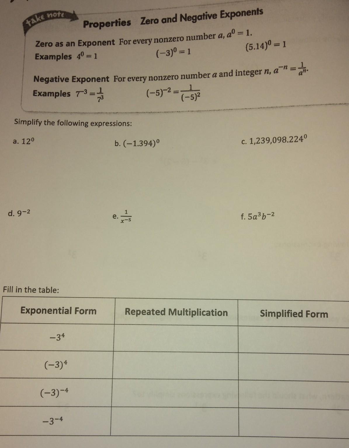 According to the table, when we have a negative exponent, the number gets turned into a fraction of