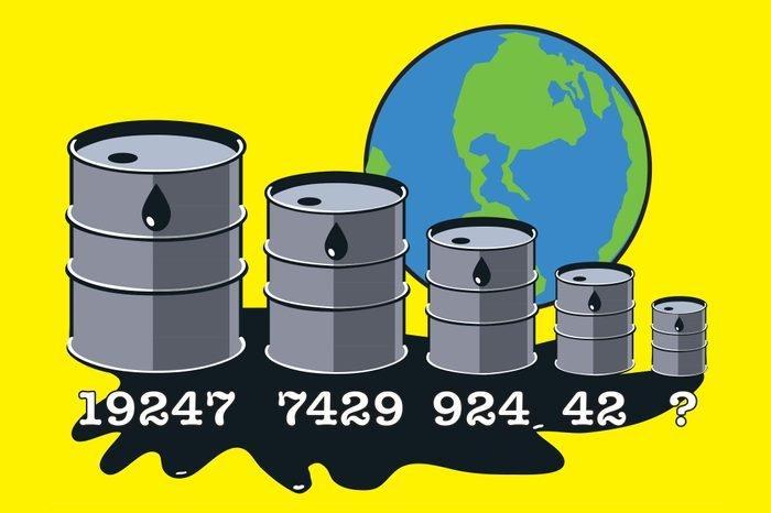 A transport company is greatly reducing the amount of oil it uses—but by how much? What number should be below the final barrel?