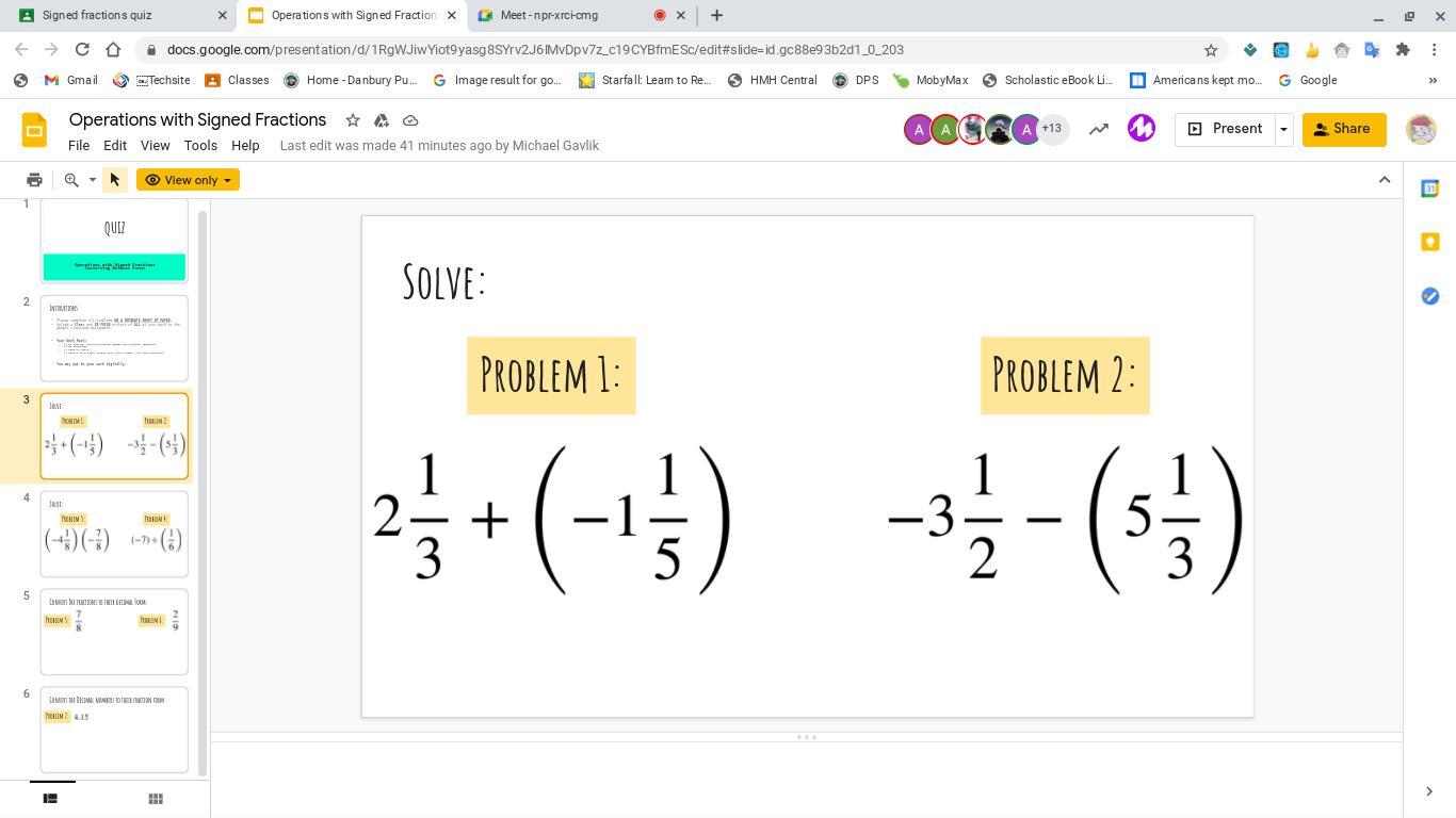 For this problem, we have two negative mixed numbers. In this case, we will simply be adding the negative numbers because both are negative. For example, -2 + -4 = -6. Here is the rewritten problem:
