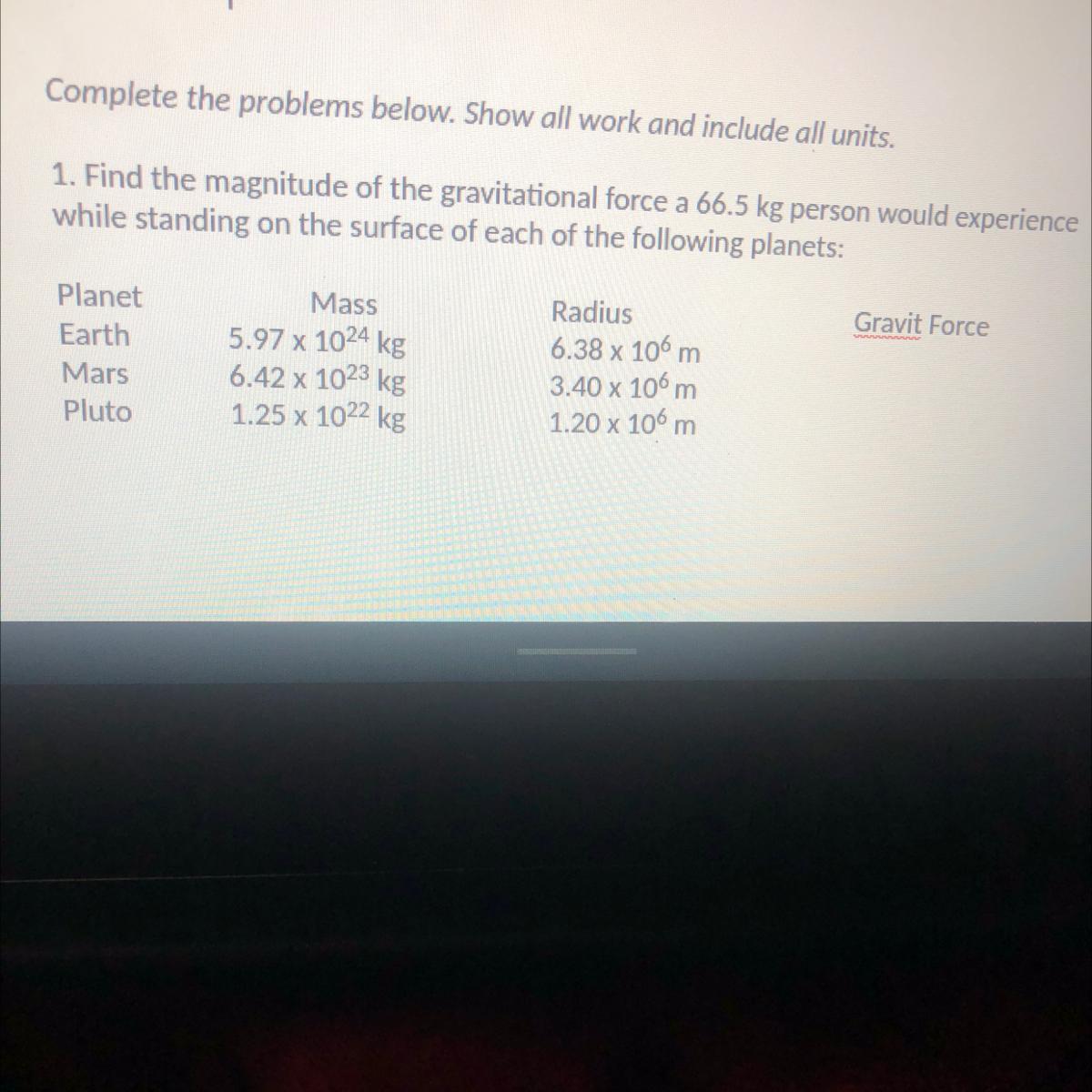 1. Find the magnitude of the gravitational force a 66.5 kg person would experience