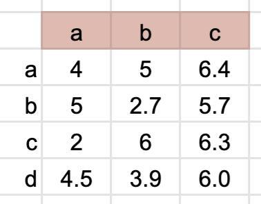 For example, consider figure (a). The horizontal distance from A to B is 10 m-6 m = 4 m. In the attached spreadsheet that difference is entered in row 'a', column 'a' as "=10-6". The length "c" is computed using the Pythagorean theorem:
