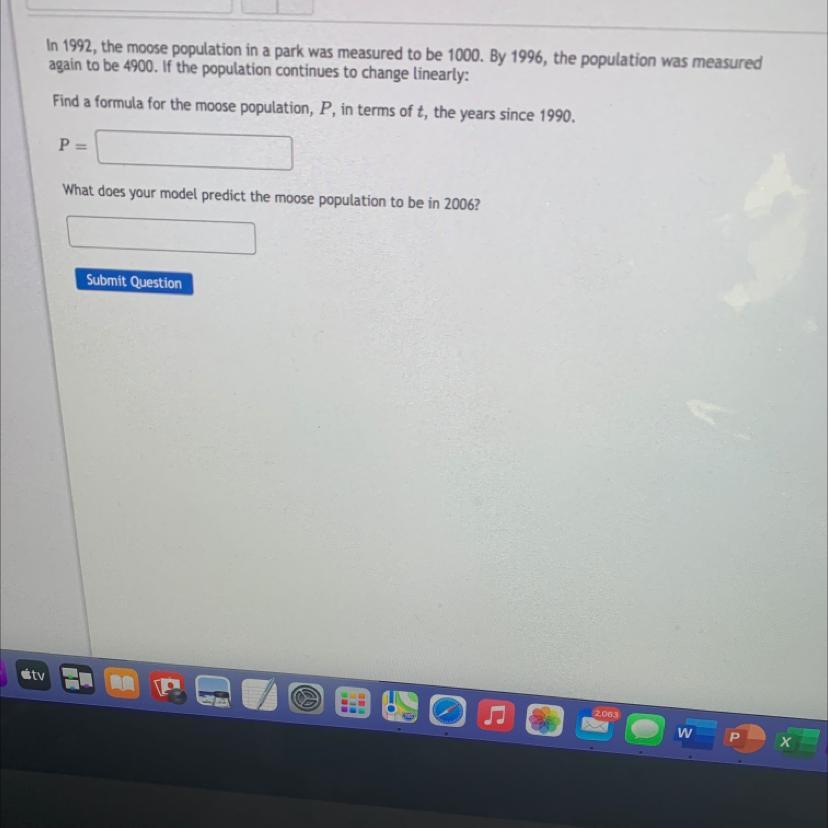 Now for the second part of the question, population of moose in 2006. We need to work out how many years apart 1990 and 2006 are which we can calculate by doing 2006-1990 = 16.