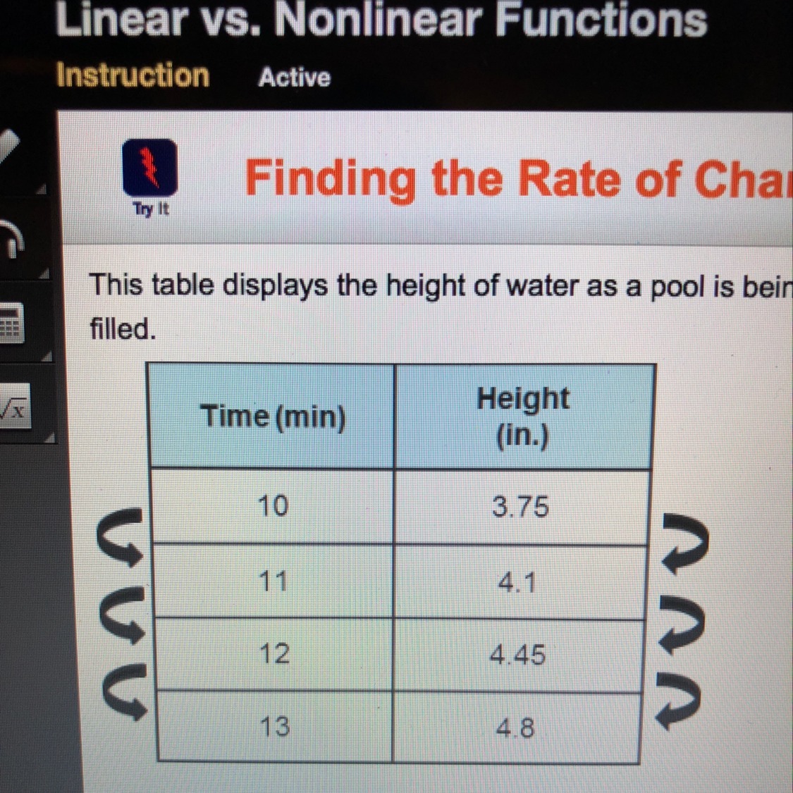 = (4.8 - 3.75) / 3 = 0.35 inches/minute (answer)