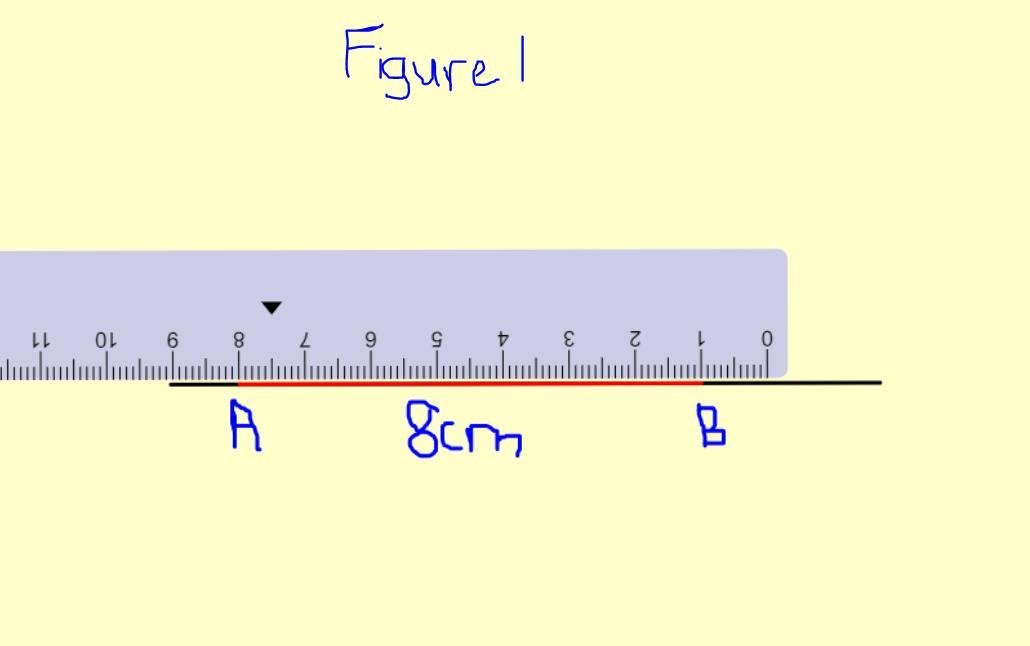 i. Using your ruler, draw a line AB with length 8cm as shown in Figure 1. This will give AB = 8cm