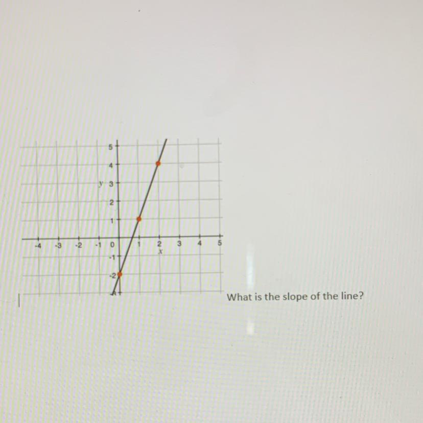 basically slope determined from a graph like this can be solved by counting. the formula you need to use is rise/run. choose one of the orange points on the line and then count how many spaces up the next dot is. once we have our number (3), you can count how many spaces over the dot is to the right (1) this leaves you with the fraction 3/1 or 3.