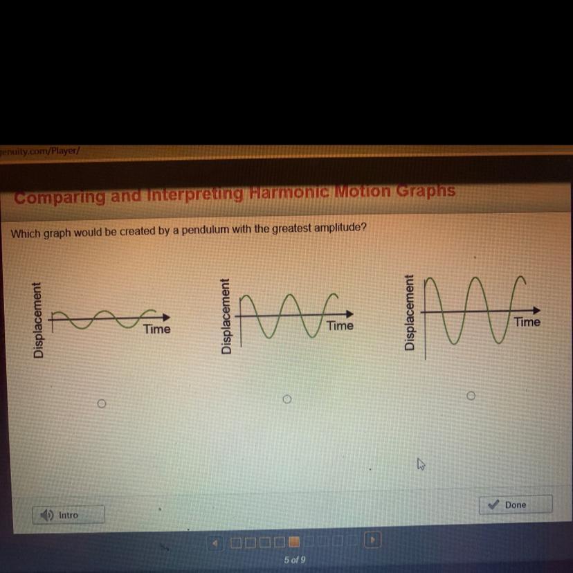 Graph (c) would be created by a pendulum with the greatest amplitude.