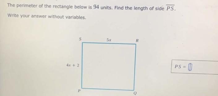 The formula for the perimeter is P = 2<em>w</em> + 2<em>l</em>, where <em>w</em> is the width and <em>l</em> is the length. It is given that the width = (x+2) and the length = (x+6). Therefore, we can make this equation: