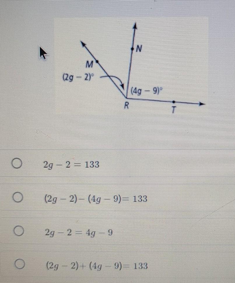 If mZMRT = 133º , then which equation can be used to find g?
