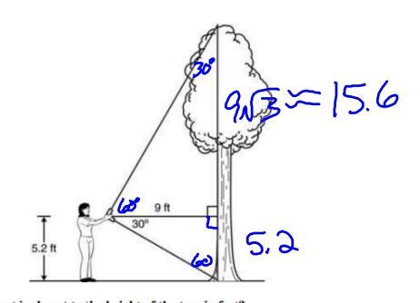 - In conclusion, applying the trigonometry ratio, TOA, the measurement that is closest to the height of the tree in feet is: D. 21