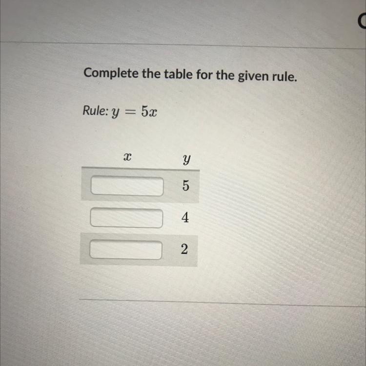 In the given rule, x is multiplied by 5 to get the values of y. The same rule can be manipulated to find the value of x in terms of y.