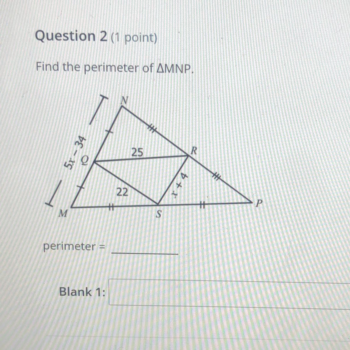 thus, we have the perimeter of MNP as 2(65) = 130 units