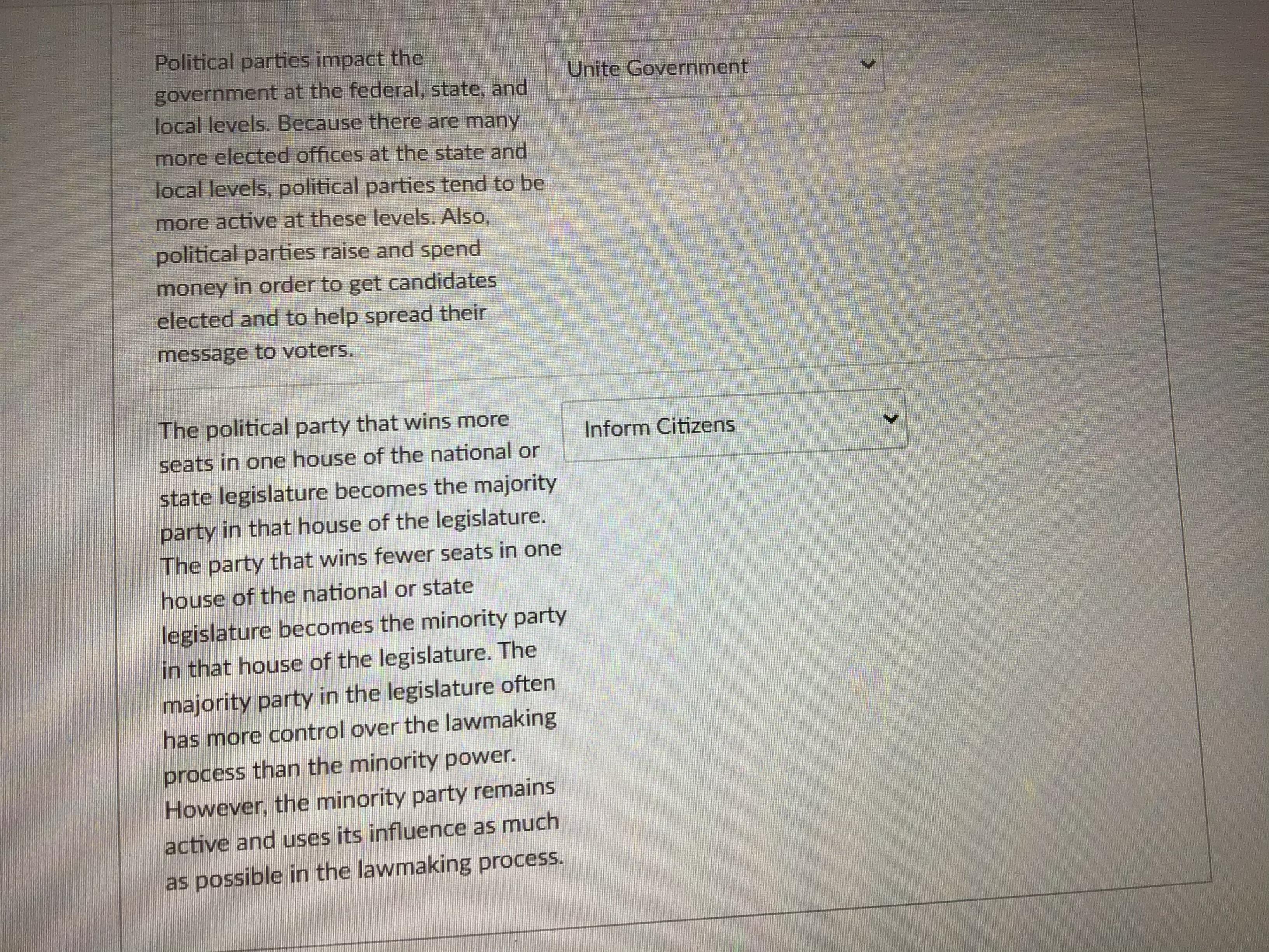 Someone please help ASAP will mark you Brainliest. The “choose” one is ‘Nominate Candidate’ and ‘Infirm Citizens’ and ‘Create Ba
