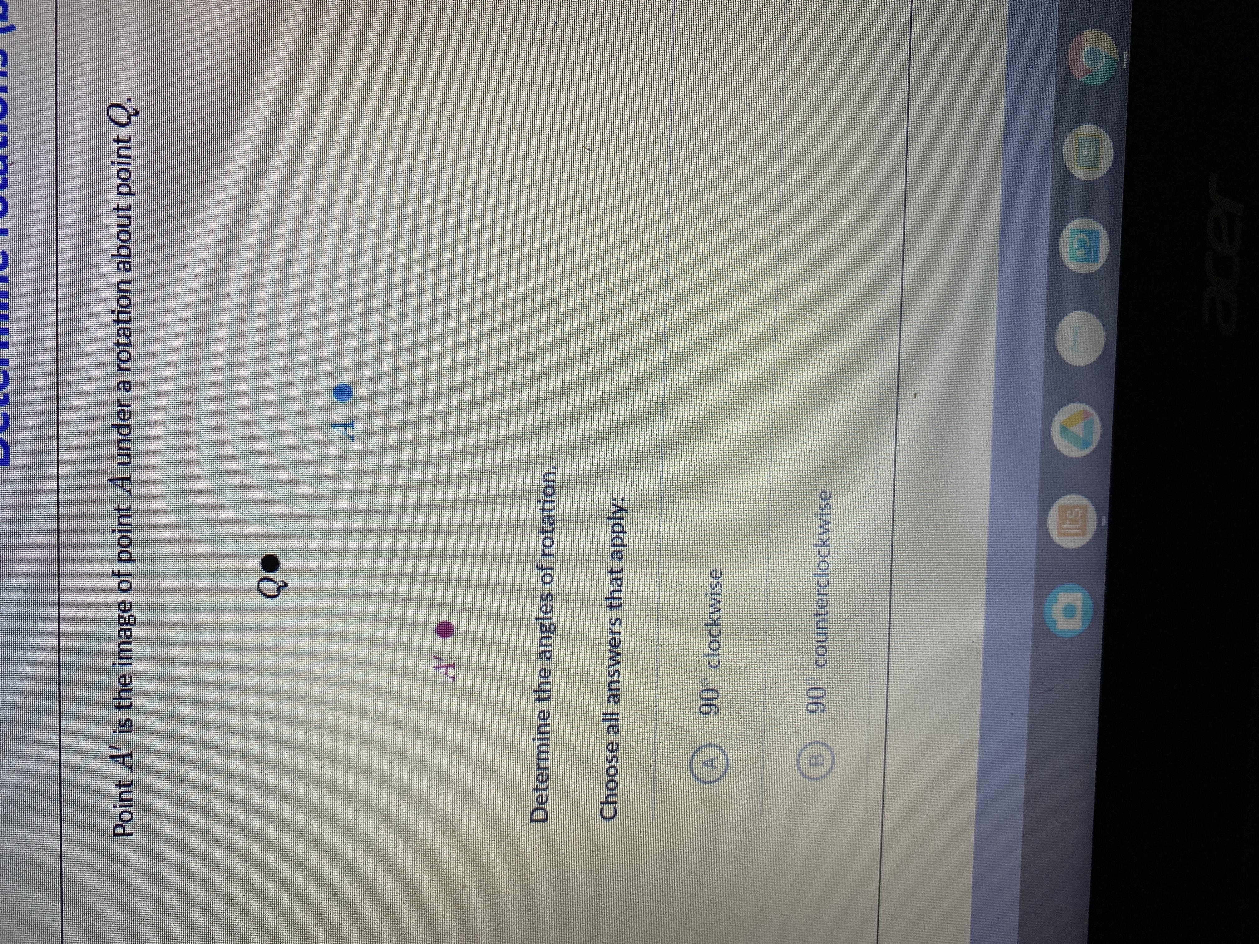 Point A’ is the image of point A under a rotation about Q. Determine the angles of rotation