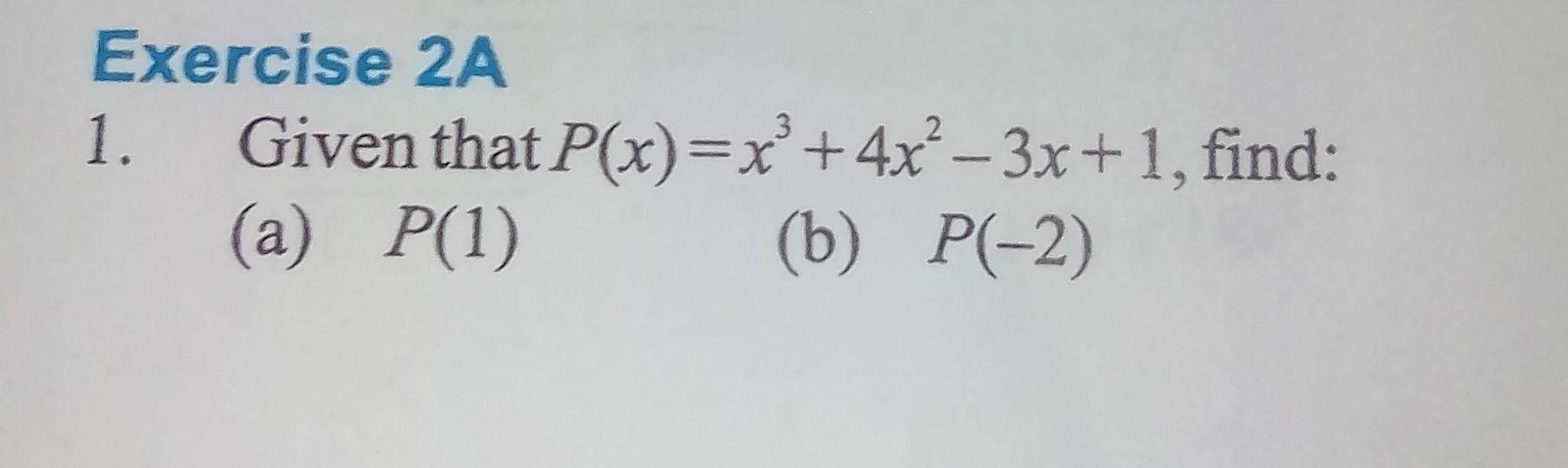 - P(-2) = (-2)³ + 4(-2)² - 3(-2) + 1 = -8 + 16 + 6 + 1 = 15