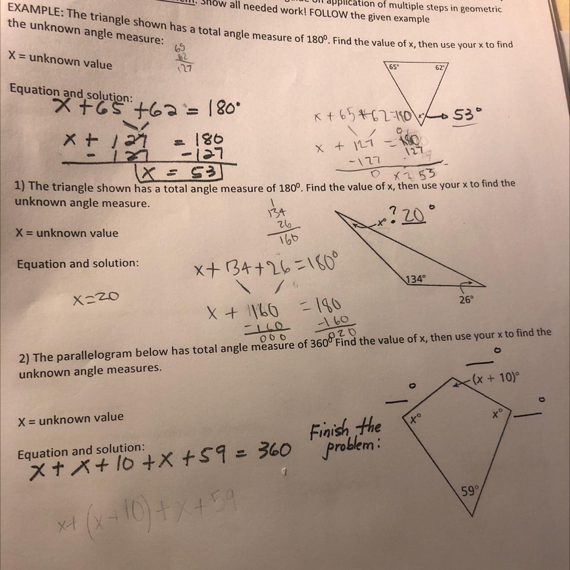 The unknown angles : 97°,97°, 107° and 59°