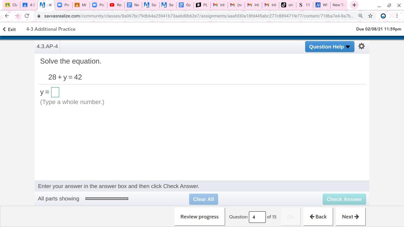 Subtract 2x from each side
