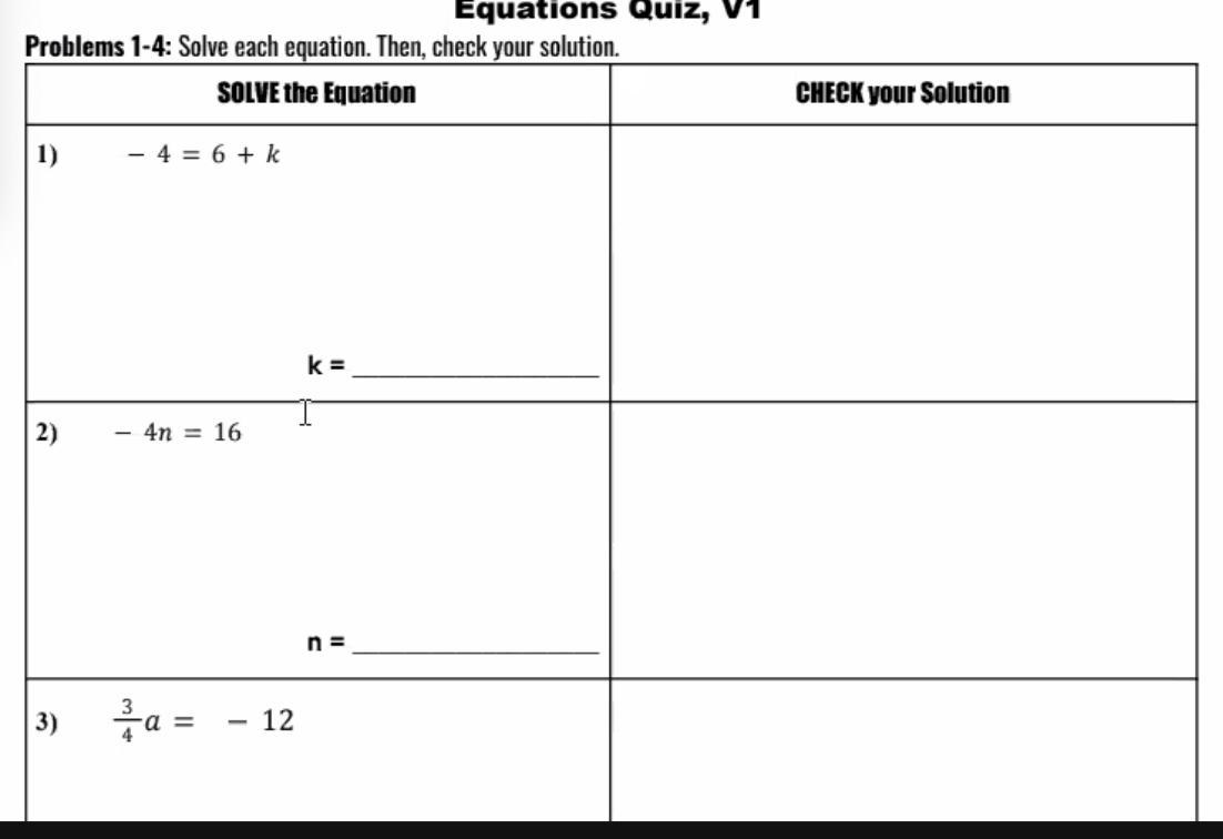 *in order to check this, we plug what we found for n, -4, into the original equation*