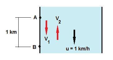 Because the distance Ab is 1 km, the time taken for the round trip is
