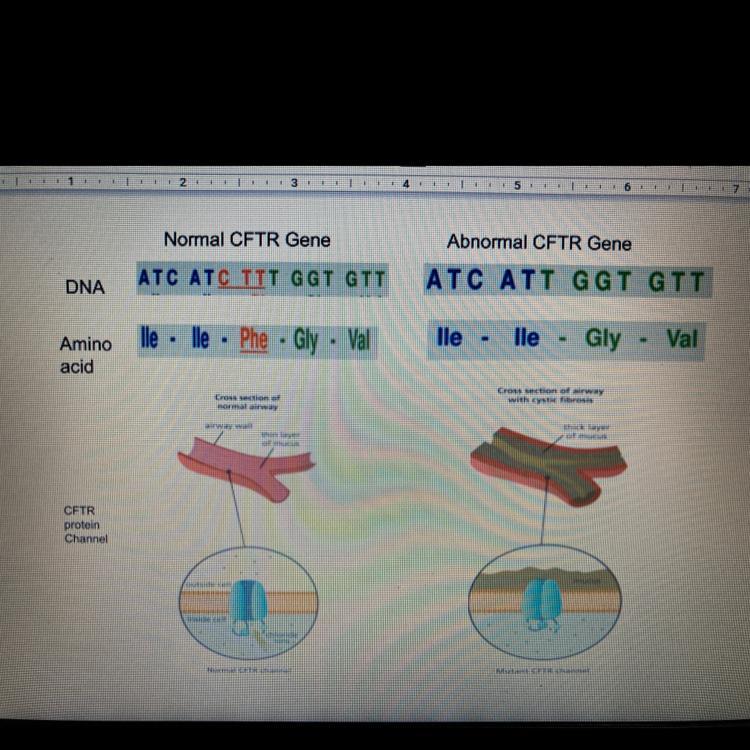 2. The abnormal structure of the CFTR protein is because the amino acid phenylalanine is lacking in the polypeptide chain of the that region of the protein. This would result in an error in the secondary and tertiary structure of the protein.