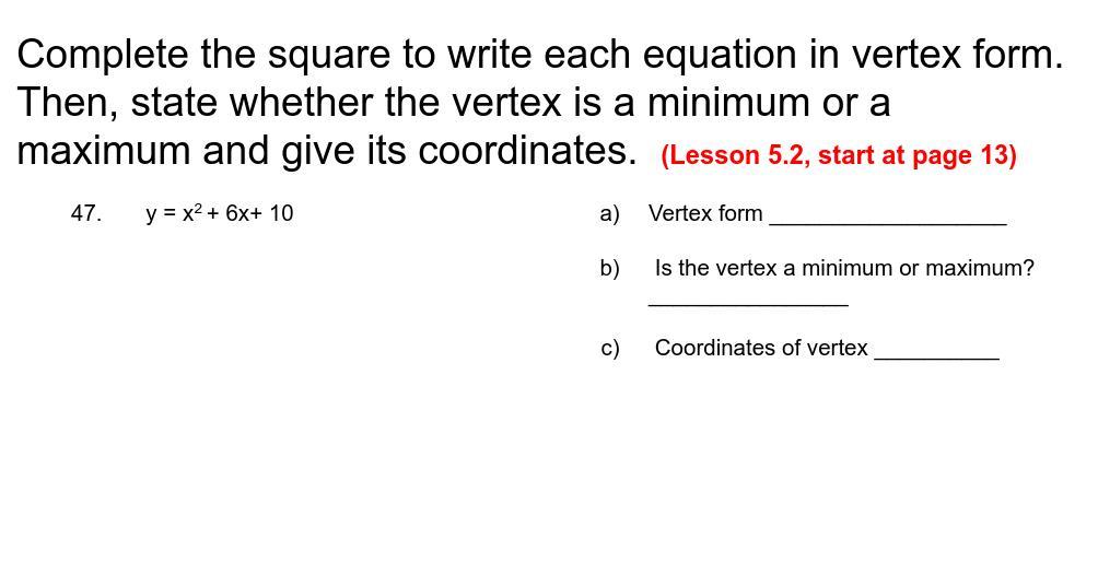 Okay so what you need to do is find the value of x or y. Substitute x or y for 0. After you do that, you'll be left with x on one side and y on the other. That's perfect. If x is alone, you want to substitute that into the equation, In parentheses. Then when you solve for the other term, you'll actually get a number answer. Then put that into the equation and substitute it where it should go, then solve and you'll get the second number