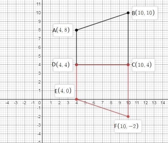 The vertices of another quadrilateral EFCD are E(4, 0), F(10, −2), C(10, 4), and D(4, 4).
