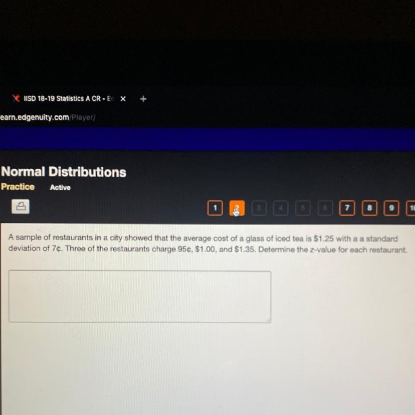 The average cost of a glass of iced tea is $1.25 with a standard deviation of 7c.