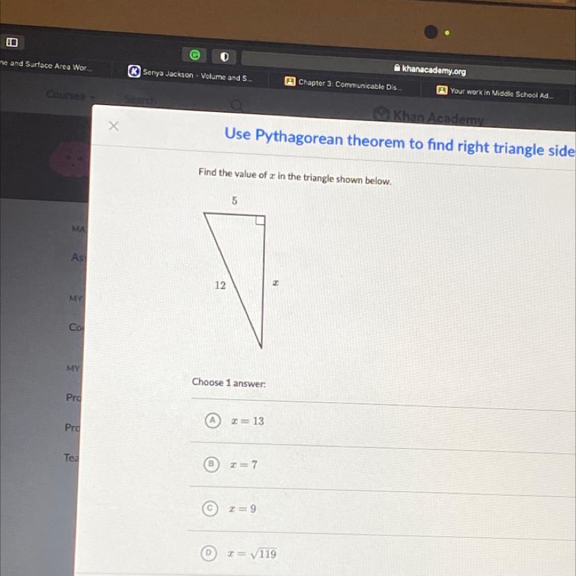 The numbers 5, 12, and 13 could represent the lengths of the sides of a right triangle.
