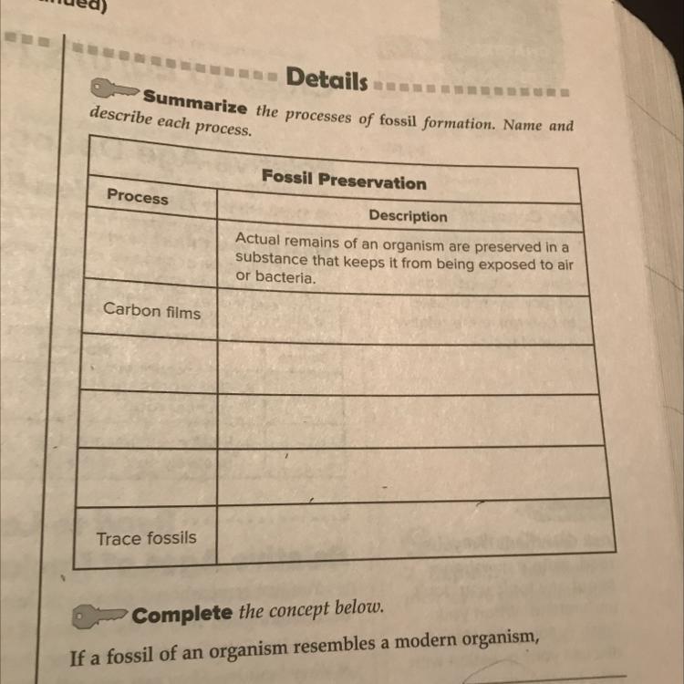 Carbon film is an organism outline of a fossil. It is a type of fossil found in any rock when organic material is compressed, leaving only a carbon residue or film. trace fossils are geological records of biological activity. They are fossils, but not of the living things themselves. The term includes the remains of other organic material produced by an organism