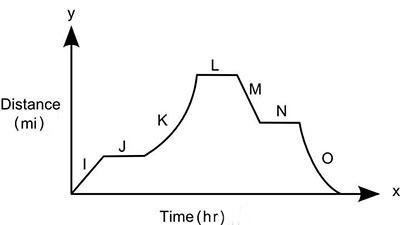 We want to study the graph during the part of the graph labeled K, which is non-linear, meaning that the accelaration is not constant. This means that the car travels different distances per unit of time, and the correct answer is: